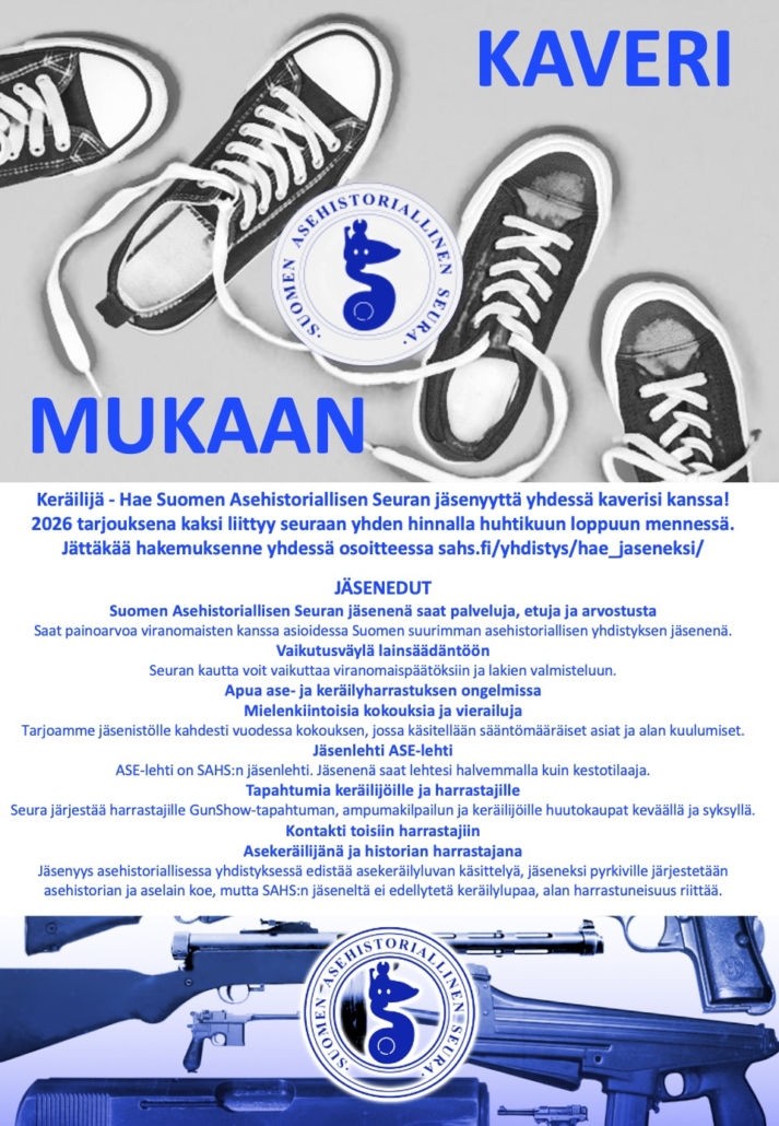 / Tiedotus/Toimittanut Sari LönnSuomen Asehistoriallisen Seuran jäsenmaksujen laskut tulevat jäsenille ASE-lehden toimituksen yhteydessä joko numero 1 tai numero 2 mukana.